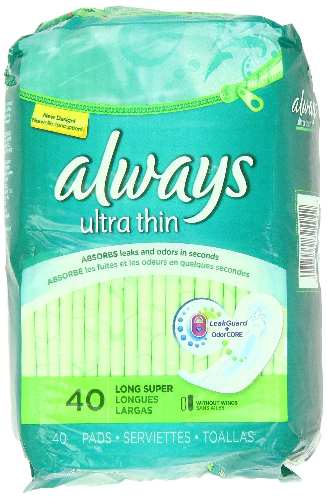 Always Ultra Long/Super Without Wings, Thin Pads 40 Count (Pack of 3)