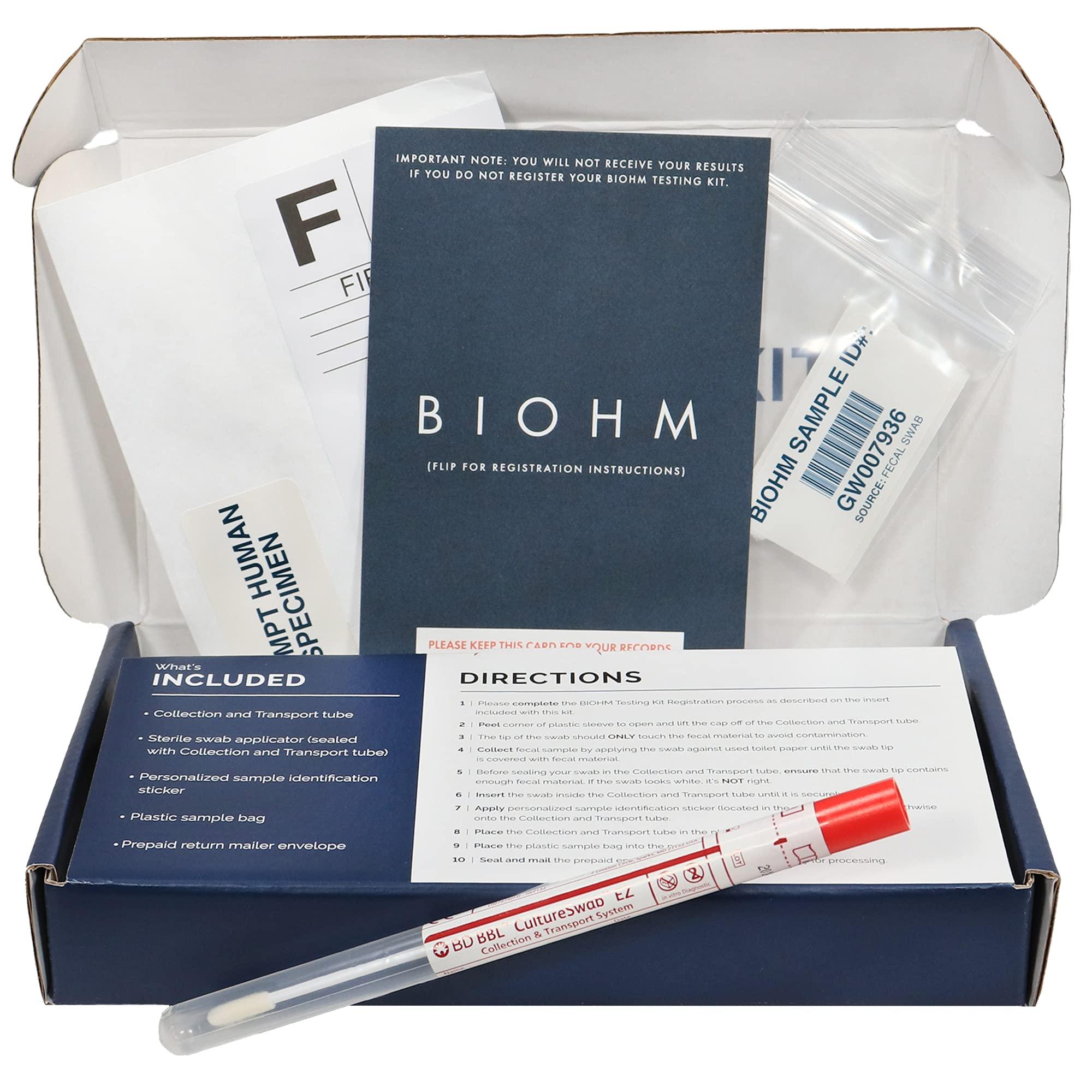 - BIOHM Gut Testing Kits should only be mailed back from within the U.S. and the time from collection to delivery at the lab should be no more than 10 business days. For these reasons, we would not advise purchasing this item if you are located outside the U.S.