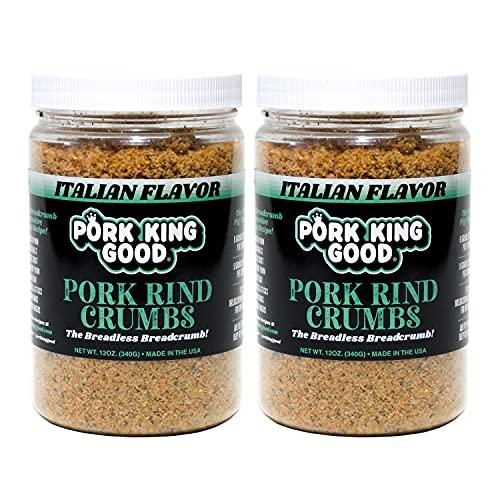 - CONVENIENT! If youve tried crunching up pork rinds before in your low carb recipes, you know that its pretty time consuming and tedious, albeit delicious. We at Pork King Good have been grinding up pork rinds for our own personal ketogenic use for quite some time, until deciding to offer this convenient option to the masses! Each of our 12 oz packages contain 4 whole cups worth of Pork Rind Crumbs and the jar shape makes for easy scooping and measuring!